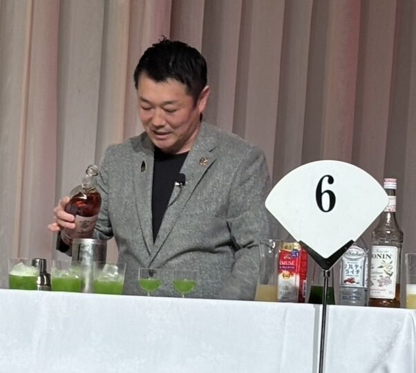 競技会の技術不足は承知の上でしたので、どうせならやりたいことをしようと。「HBA方式」という目分量でのカクテル調合プロセスをしながら、目線を外してお客さまとおしゃべりをするという無謀なチャレンジは自分を無残な結果に導きました。次にチャンスがあったら、もうしません💧